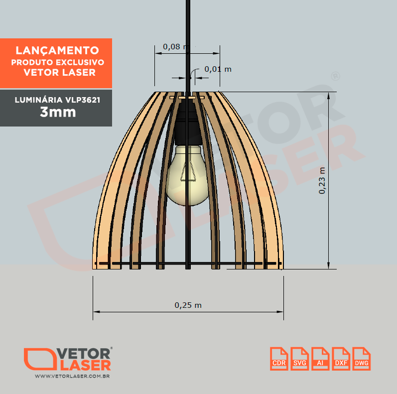 Estamos disponibilizando gratuitamente o vetor da luminária pendente modelo VLP3621 desenvolvida por nós. O arquivo zipado contém o DXF, DWG, CDR, SVG e Ai.